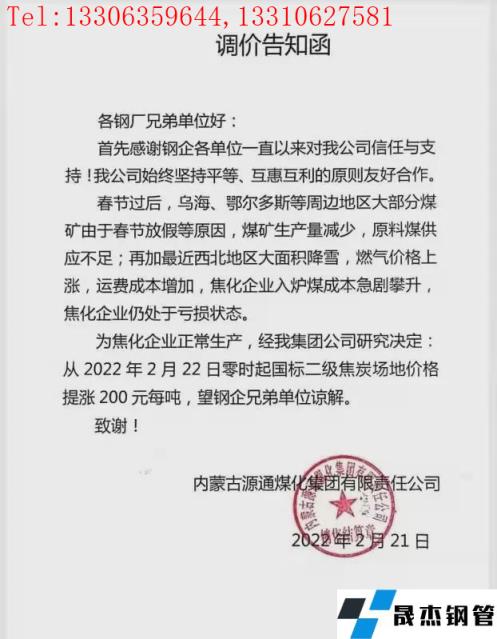考慮運費等價格上漲,自2月22日零時起對二級焦炭價格上調(diào)200元/噸,具體內(nèi)容如下: