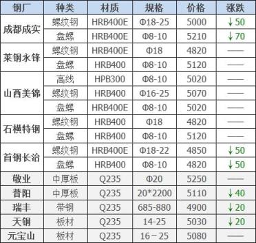 下調(diào)10家,占比58.9%,調(diào)價幅度10-70元/噸,